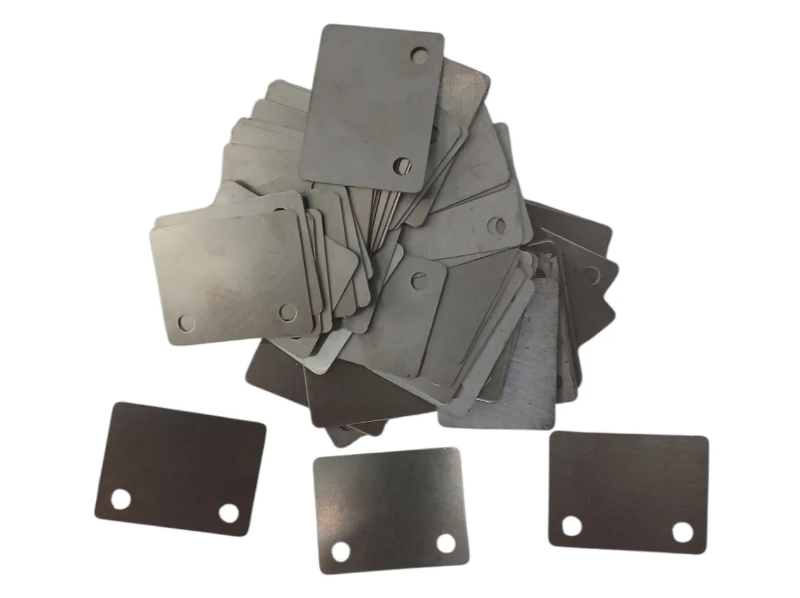 KIT COM 50 UNIDADES CHAPA PLACA DE IDENTIFICAÇÃO EM AÇO INOXIDÁVEL 52X40X1mm COM 2 FUROS 6mm SETOR: 0053-10